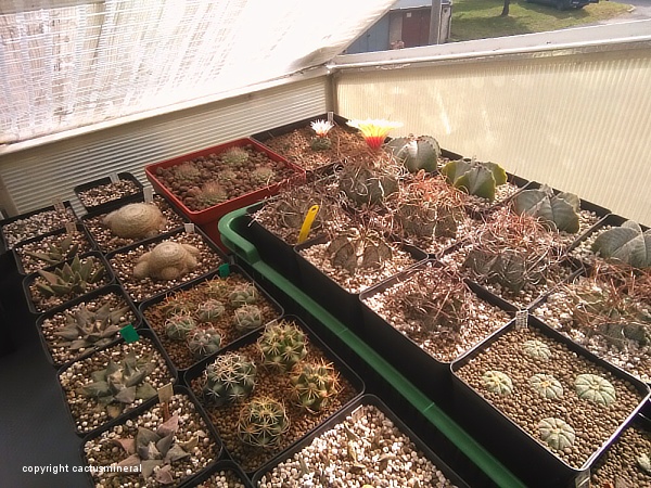 2017 - Vystěhováno za žhavé vichřice 4.3. Ve čtvrtek 2.3. přechod dvojitého tornáda se smrtelným následkem. Obrovská reorganizace sbírky. Největší balík s obr gymny i feráky v historii tohoto webu i mého kaktusaření vůbec. Leden a únor holomrazy v kuse okolo -14C, březen tropy, duben sněžení, květen mráz, červen dobrý, červenec a srpen likvidační vedra +40C. Sestěhováno 8.11. 2017, 16:30 ! Příšerná sezóna !