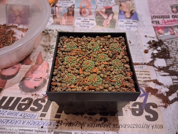 Sázím do úplně jiných substrátů než většina kaktusářů. SBC disciformis ssp. pulcherrimus PC49.